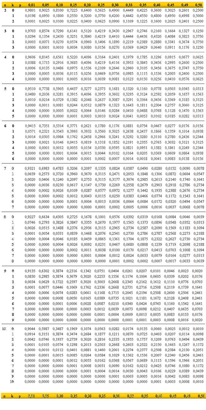 - Función de probabilidad: \(f(i)=P(X=i)=\binom{n}{i}p^i(1-p)^{n-i}\)