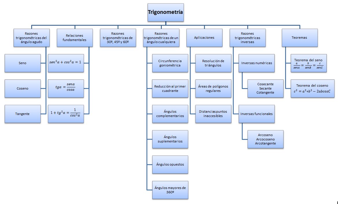 - \(tg \alpha=\dfrac{sen \alpha}{cos \alpha}\)