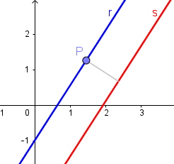 Sea P un punto de r. Entonces: \(d(r,s)=d(P,s)\)