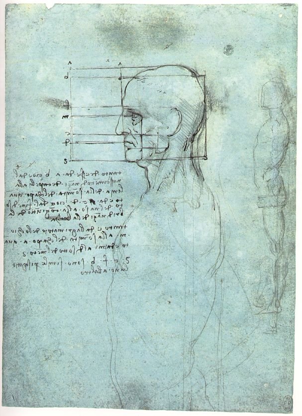 | Proporciones de una cabeza. Leonardo da Vinci, ca. 1488. |