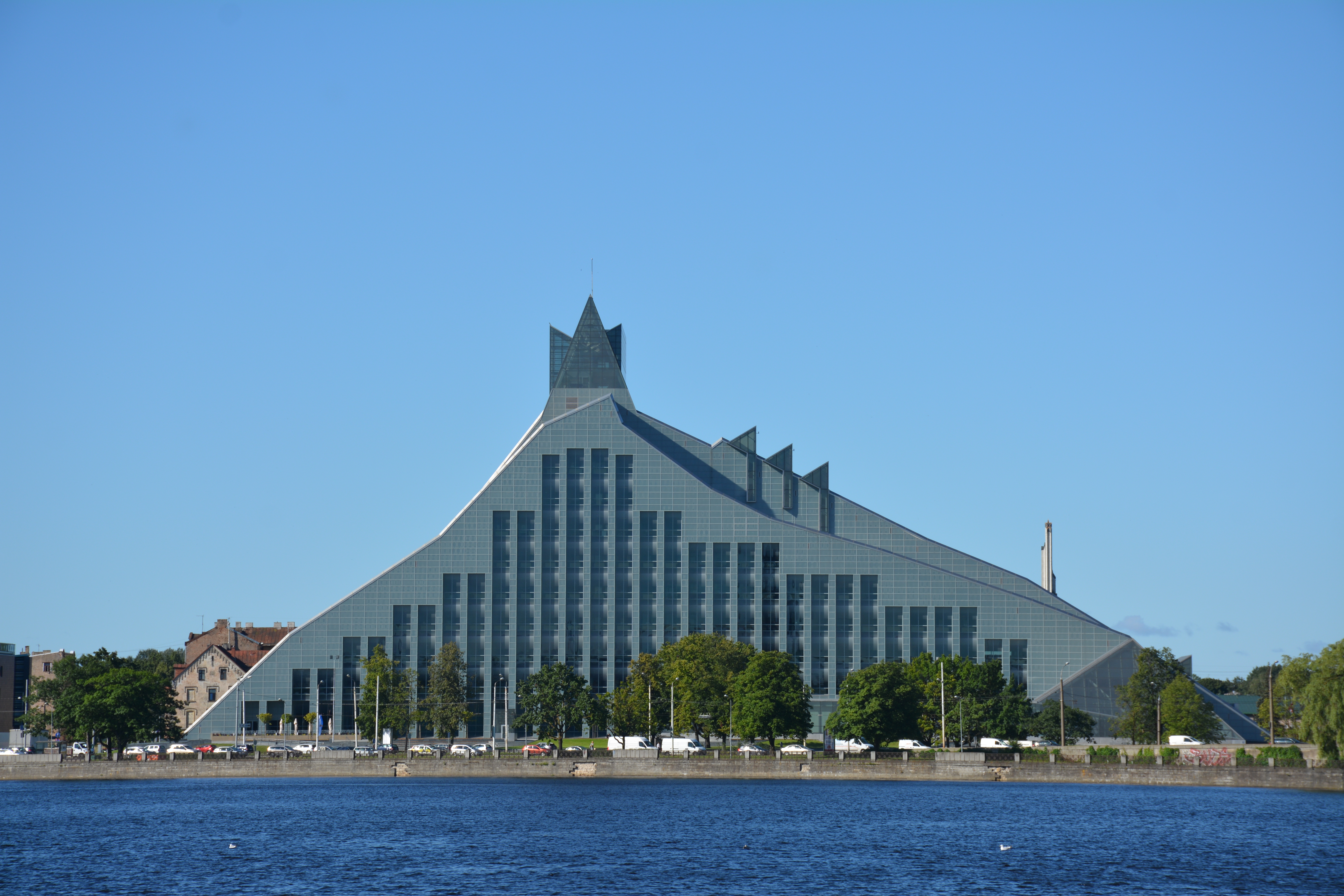 Biblioteca Nacional LetonaAunque se ve desde la otra orilla, hasy que cruzar el puente Akmens para llegar hasta la impresionante Biblioteca Nacional Letona, cuyo perfil reproduce el de un castillo mítico, el Castillo de la luz.Son vestíbulo es soberbio: desde él se pueden ver las distintas plantas estructuradas en terrazas alrededor del patio piramidal. Un curioso juego de espejos lo llena todo de libros. Magnífico. Es obra de Gunārs Birkerts