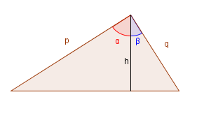 Para dos ángulos cualesquiera \(\alpha\ y\ \beta\) se tiene que \[sen(\alpha+\beta) = sen \alpha cos \beta+ cos \alpha sen \beta\] Demostración 1) Veamos primero que el área de un triángulo se puede calcular mediante la fórmula: \[A=\dfrac{1}{2}absen\alpha\ \ \ \ \ \ \ [1]\] donde a y b son dos de los lados y \(\alpha\) el ángulo que forman. Supongamos que el ángulo \(\alpha\) es agudo y que h es la altura del triángulo: Entonces \(A=\dfrac{1}{2}ah\ \ \ \ \ \ \ [2]\). En el triángulo de lados a, b y h se tiene, por definición, que \(sen \alpha=\dfrac{h}{b}\). Por tanto, \(h = bsen \alpha\). Sustituyendo h en [2], \(A=\dfrac{1}{2}absen\alpha\), como queríamos demostrar. Para \(\alpha\) obtuso basta recordar que \(sen(\pi - \alpha) = sen \alpha\). 2) Demostración del teorema. La idea es utilizar el resultado anterior para expresar el área de un triángulo de dos maneras, una utilizando el seno de dos ángulos \(\alpha\ y\ \beta\) y otra utilizando el seno de la suma de dichos ángulos. Igualadas las dos expresiones, bastarán unas sencillas simplificaciones para lograr la fórmula buscada. Construimos un triángulo que tenga uno de sus ángulos igual a la suma de los ángulos A y B: Aplicando la fórmula [1] al triángulo rectángulo de la izquierda se tiene que su área es: \(A_1=\dfrac{1}{2}phsen \alpha\) Aplicando la fórmula [1] al triángulo rectángulo de la derecha se tiene que su área es: \(A_2=\dfrac{1}{2}qhsen \beta\) Aplicando la fórmula [1] al triángulo completo se tiene que su área es: \(A=\dfrac{1}{2}pqsen (\alpha + \beta)\) Evidentemente, \(A=A_1+A_2\). Entonces: \[\dfrac{1}{2}pqsen (\alpha + \beta)=\dfrac{1}{2}phsen \alpha+\dfrac{1}{2}qhsen \beta\] Dividiendo todo entre \(\dfrac{1}{2}pq\) se tiene: \[sen (\alpha + \beta)=\dfrac{h}{q}sen \alpha+\dfrac{h}{p}sen \beta\] Como, por definición, \(\dfrac{h}{q} = cos \beta\); \(\dfrac{h}{p} = cos \alpha\), sustituyendo: \[sen(\alpha+\beta) = sen \alpha cos \beta+ cos \alpha sen \beta\] q.e.d. Nota: en la demostración se ha supuesto implícitamente que \(\alpha+\beta<\pi\) . Se deja al lector la extensión de la demostración a cualquier otro caso. |
