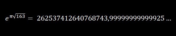 Tenemos el número e, trascendente; el número π, también trascendente; y la raíz cuadrada de 163, que es irracional. Sin embargo, el resultado está extraordinariamente cerca de un número entero. Otro hallazgo de Ramanujan. |