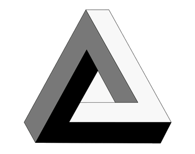Tribar de PenroseEsta paradoja visual fue dibujada por primera vez en 1934 por Reutersvärd y redescubierta por Lionel y Roger Penrose en un artículo ía Escher para realizar algunas de sus litografías. Lo que aquí vemos es un dibujo, pero esta figura imposible es fotografiable, como se explica en Ilusiones ópticas.