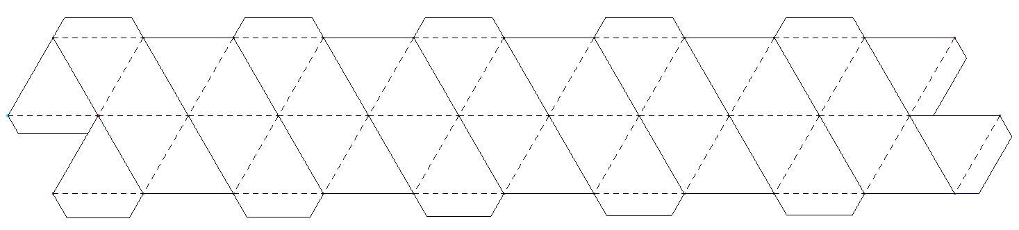 Es necesario hacer una observación: todos los calidociclos presentados son regulares, es decir, están formados por tetraedros regulares salvo el de orden seis porque, sencillamente, no existe, en el sentido de que, aunque se puede construir, no tiene la capacidad de girar completamente sobre sí mismo porque los vértices acaban chocando entre sí. En la web se pueden encontrar desarrollos para un calidociclo así, regular de orden seis, pero se aprovechan de la elasticidad estructural que da el papel: con acero no funcionarían. Sin embargo, para poder visualizar un calidociclo de orden seis basta alargar un poco los triángulos y hacerlos ligeramente isosceles. La siguiente construcción ofrece las dos versiones, sin trampa y con trampa. Bonito, ¿verdad? Eso sí, el modelo no es completo: solo muestra las formas más simétricas del poliedro, pero no sus infinitas otras formas. Quizá en otra ocasión. |