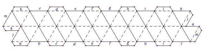 El recortable que presento a continuación es un poliedro anular formado por diez tetraedros que posee la curiosa propiedad de poder girar sobre sí mismo. El siguiente esquema muestra como construirlo. Instrucciones: