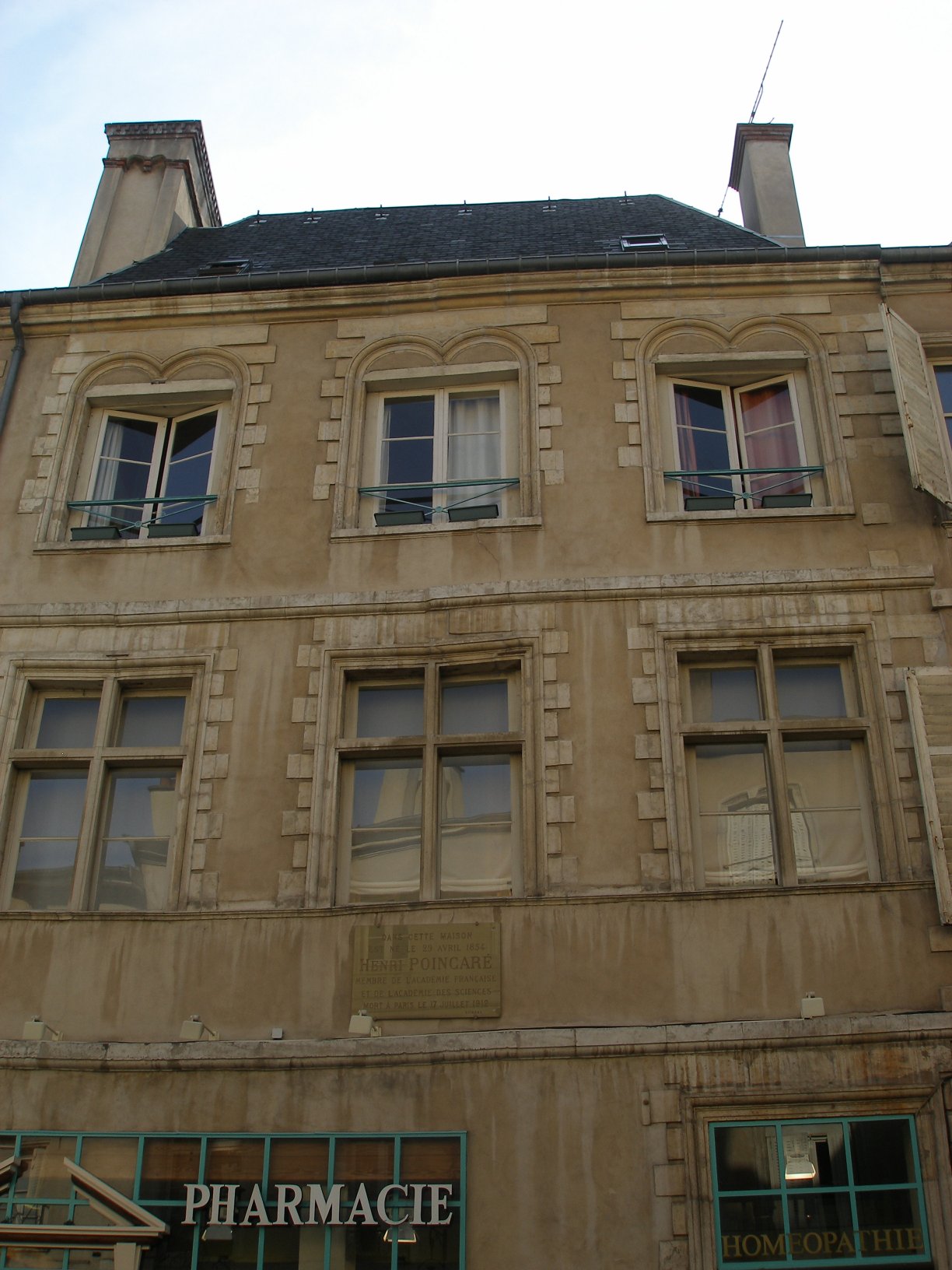 Detalle de una fotografía de Henri Poincaré obra de Henri Manuel. La placa de la derecha está en la casa natal de Poincaré, en Nancy (Francia). Foto: A. |