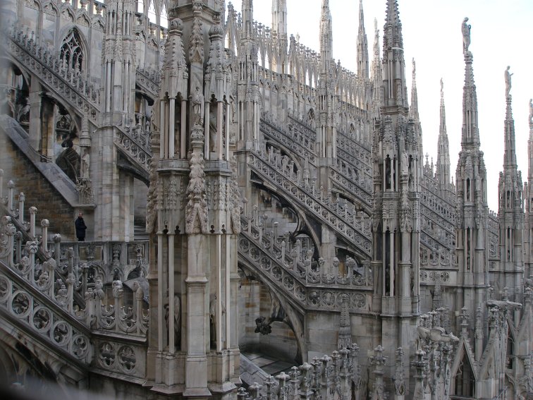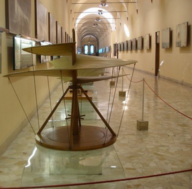 Las máquinas de LeonardoEn Milán, Leonardo da Vinci es ubicuo: es el autor de uno de sus mayores reclamos turísticos, el fresco de La última cena de la iglesia de Santa Maria delle Grazie. En la Pinacoteca Ambrosiana se reverencian el Codex Atlanticus, con cientos de dibujos del maestro, y su obra Il musico. Frente al famosísimo Teatro alla Scala, una escultura vigila a quienes entran en su interior: no es Verdi, ni Puccini: es Leonardo. En el Castello Sforzesco se puede ver una muestra de sus cuadernos. Y el Museo Nazionale della Scienza e della Tecnica se llama... Leonardo da Vinci. En él, además de algún reloj interesante y una reproducción de una máquina de calcular de Babbage (abajo a la izq.), hay una gran sala dedicada a algunos de los artilugios ideados por el pintor-ingeniero, representados mediante magníficas maquetas. El más matemático de todos ellos quizá sea la hélice volante que se puede ver en la fotografía y que da inicio a la exposición. Toda una gozada. En cualquier caso, Milán no se acaba en Leonardo. Merece la pena admirar la cúpula de la galería Vittorio Emanuelle; o la compleja geometría del románico lombardo, del que es un ejemplo sobresaliente la mencionada Iglesia de Santa Maria delle Grazie, con un cimborrio de catorce lados nada menos; o el paralelismo flamígero del espectacular Duomo. En el interior del Duomo se puede admirar también la imagen de San Bartolomé desollado con la piel de todo su cuerpo colgando sobre sus hombros, pero eso ya no es matemática: es sadomasoquismo.